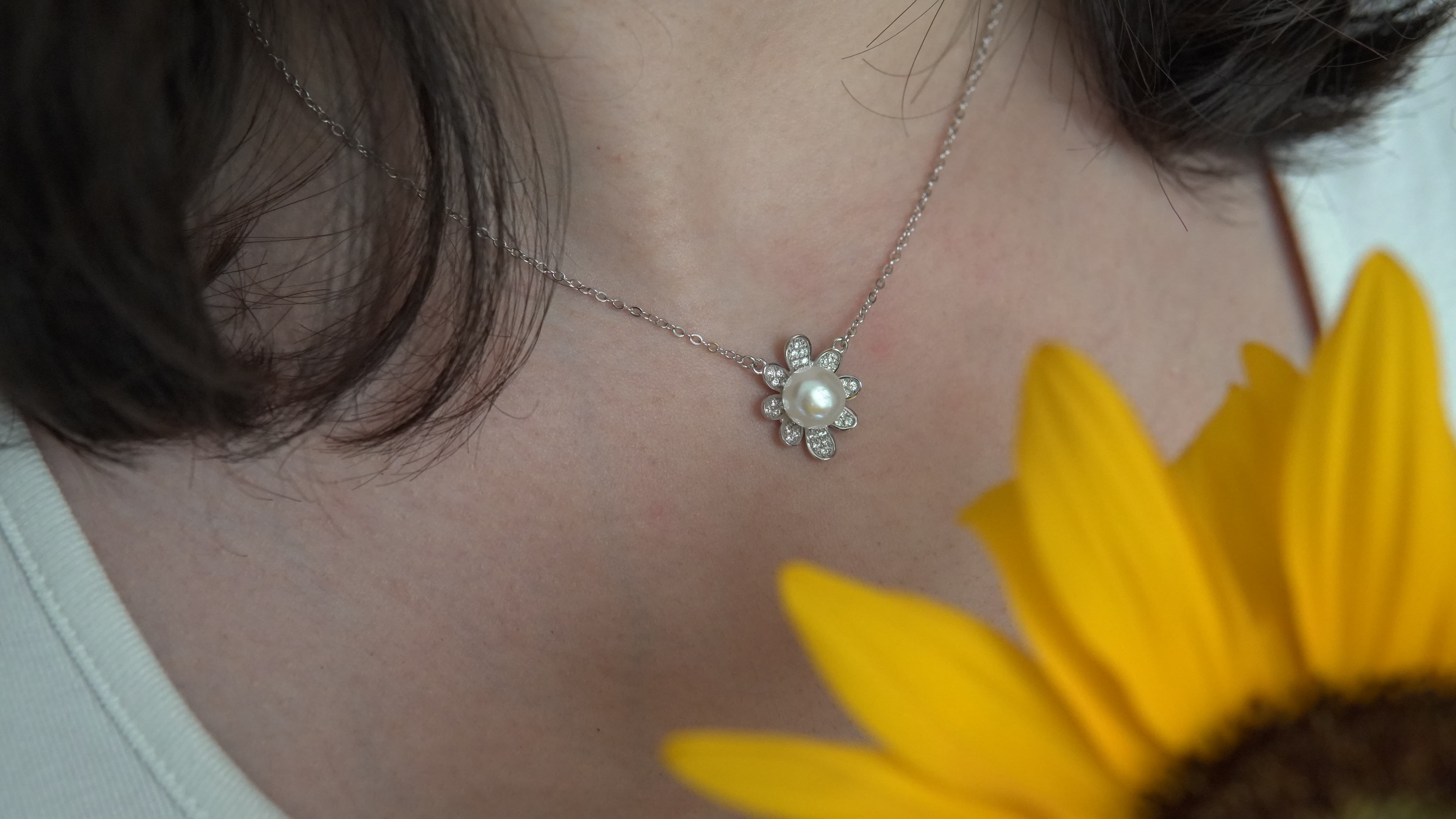 مدال زنجیر دخترانه و زنانه شکوفه مروارید | نقره آبکاری درجه یک