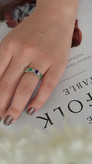 انگشتر نقره زنانه و دخترانه جواهری با سنگهای طبیعی زمرد، زبرجد و کیانیت | نقره آبکاری درجه یک | شناسنامه و فاکتور اصالت از لیا گالری