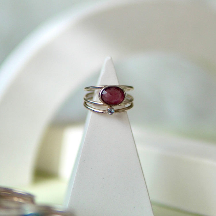 انگشتر زنانه و دخترانه اسپرت نقره و سنگ طبیعی|ترمالین-توپاز|دیوا