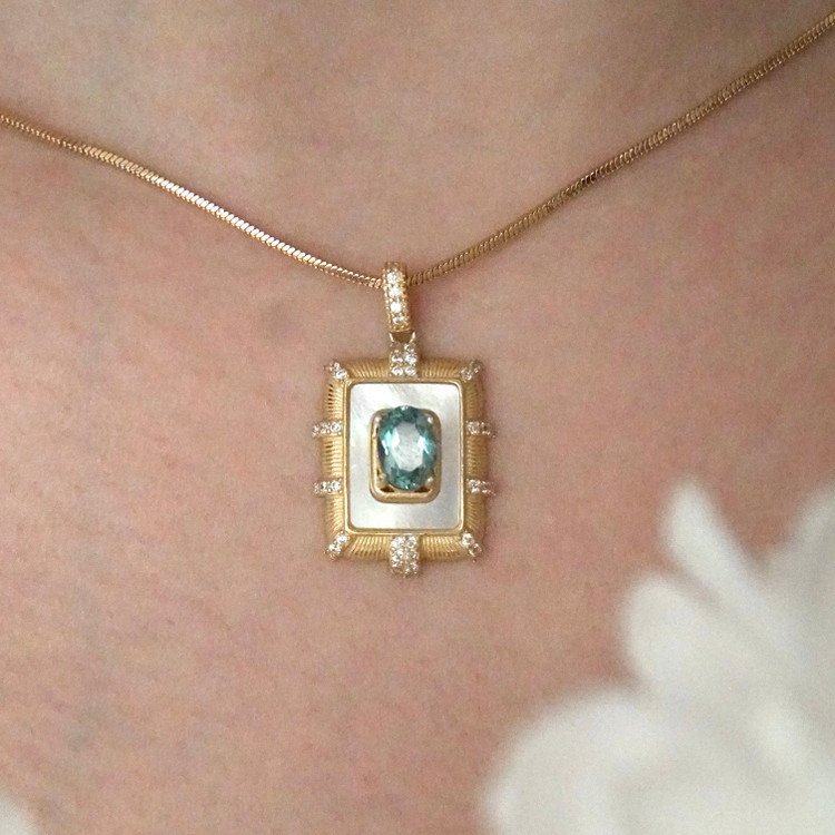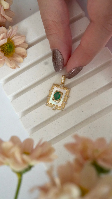گردنبند زنانه و دخترانه جواهری با سنگ زمرد و صدف طبیعی | نقره با آبکاری درجه یک