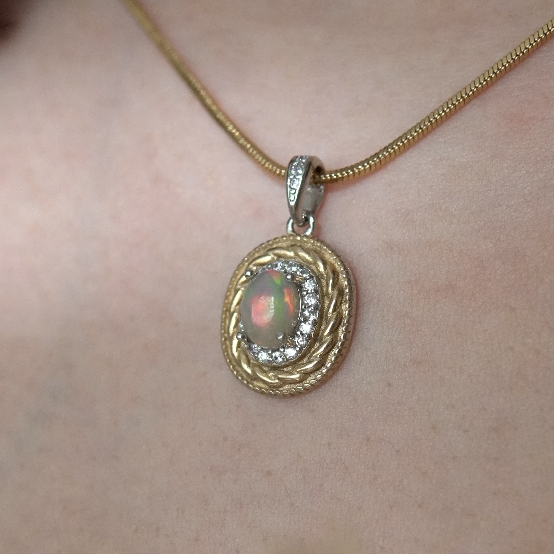 مدال جواهری زنانه و دخترانه سنگ اوپال و صدف طبیعی |نقره با ابکاری درجه یک