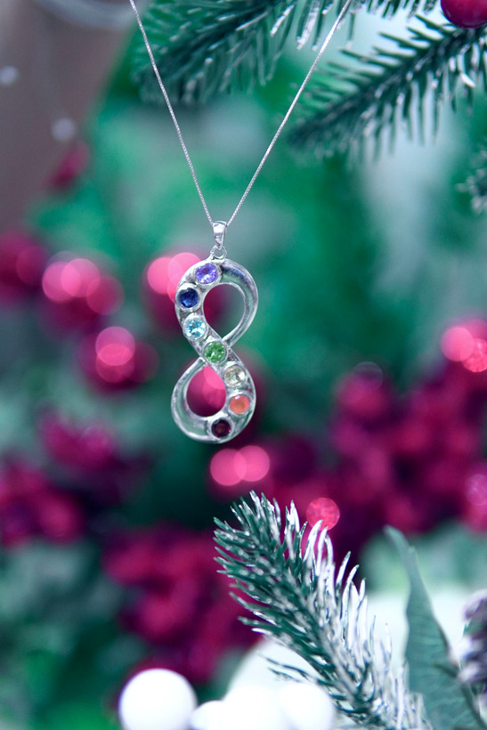 مدال اسپرت هفت چاکرا بی نهایت زنانه و دخترانه با پایه نقره و سنگ های طبیعی