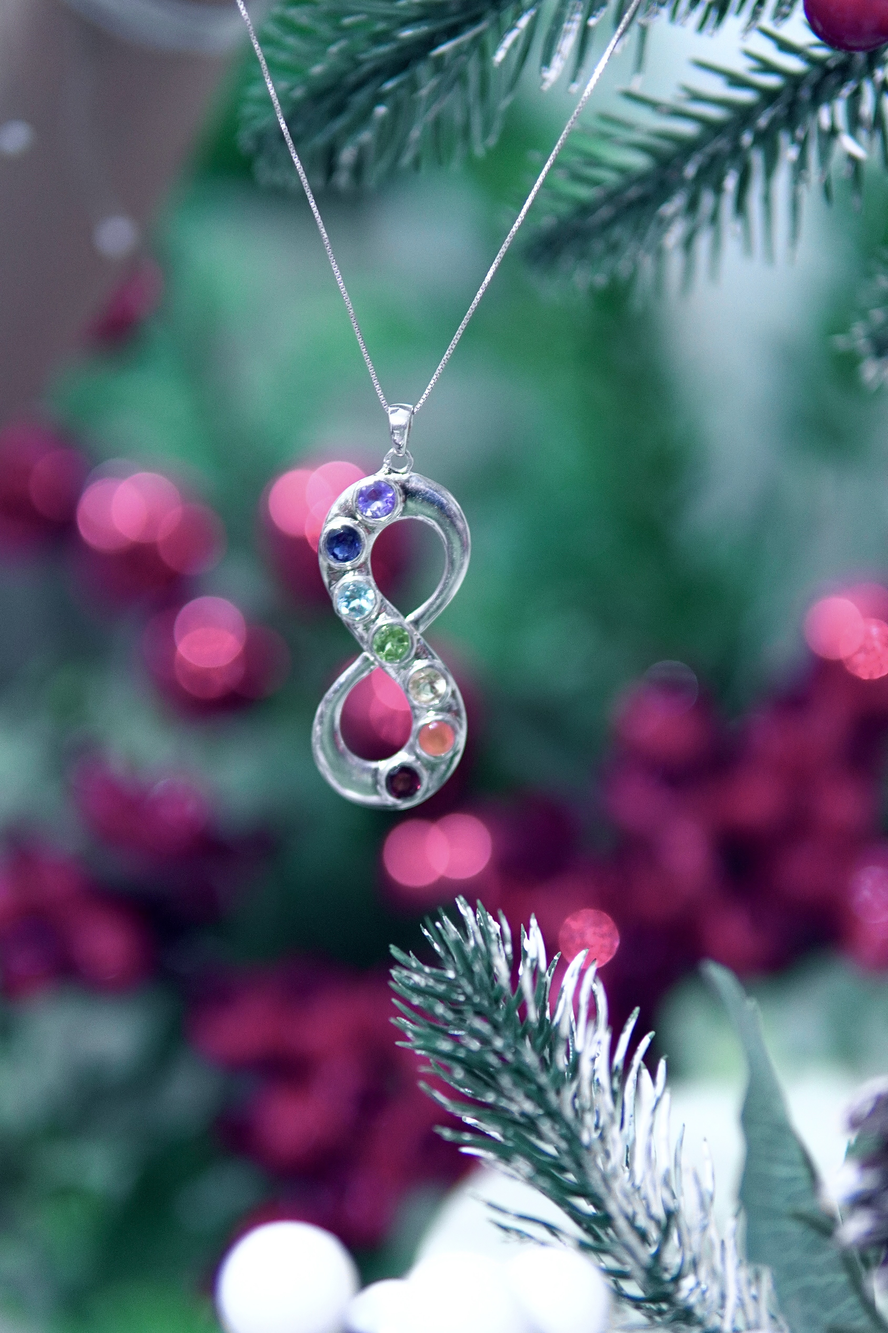مدال اسپرت هفت چاکرا بی نهایت زنانه و دخترانه با پایه نقره و سنگ های طبیعی