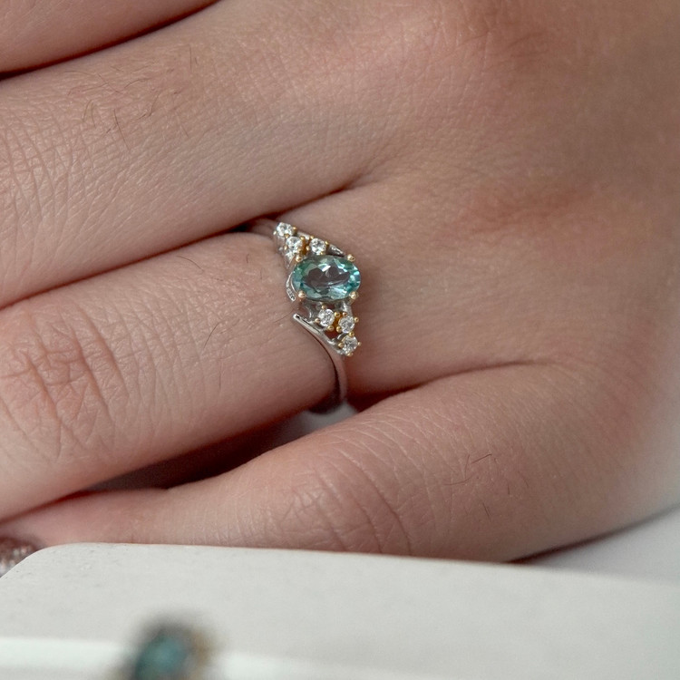 نوع محصولانگشتر جواهری زنانه و دخترانه با سنگ طبیعی توپاز سوییسی چپ و راستی | پایه نقره با آبکاری درجه یک