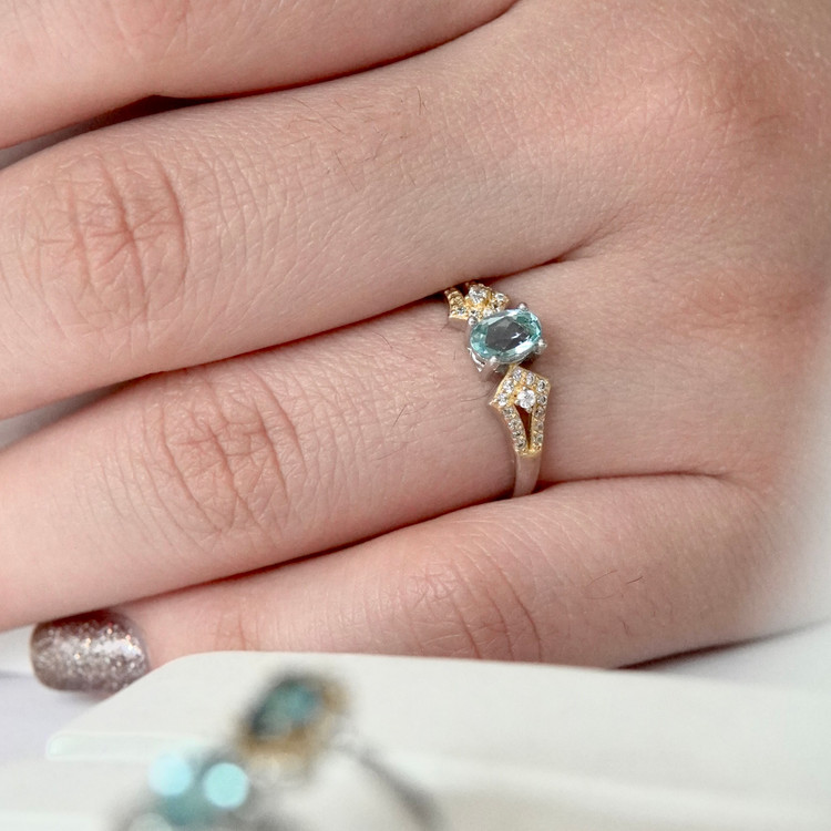 انگشتر جواهری زنانه و دخترانه با سنگ طبیعی توپاز اسکای مدل میلاد | پایه نقره با آبکاری درجه یک