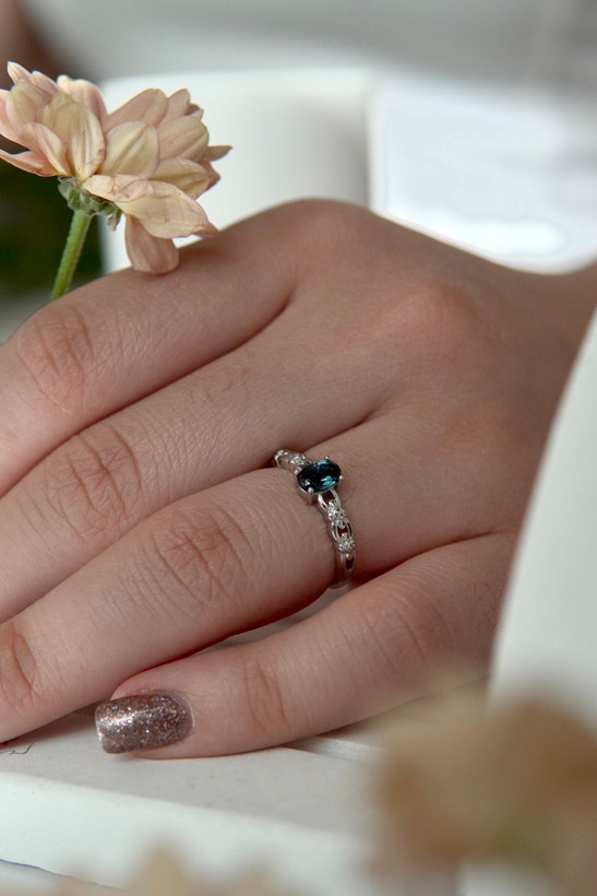 انگشتر جواهری زنانه و دخترانه با سنگ طبیعی توپاز لندن طرح هرمس | پایه نقره با آبکاری درجه یک