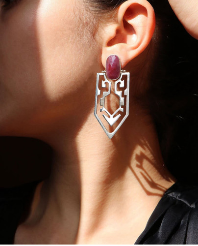 گوشواره تک نسخه دستساز یاقوت(طرح فرش ایرانی)