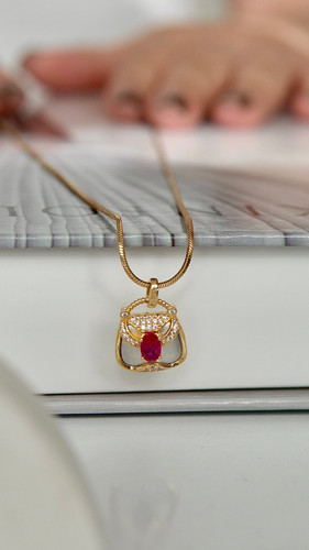 گردنبند دخترانه و زنانه کیف یاقوت سرخ | نقره آبکاری طلایی