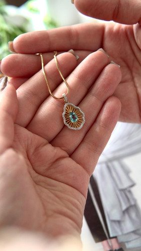 مدال گردنبند دخترانه و زنانه توری توپاز آبی | نقره آبکاری طلایی