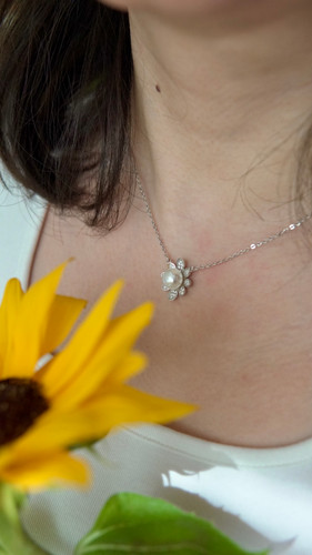 مدال زنجیر دخترانه و زنانه شکوفه مروارید | نقره آبکاری درجه یک