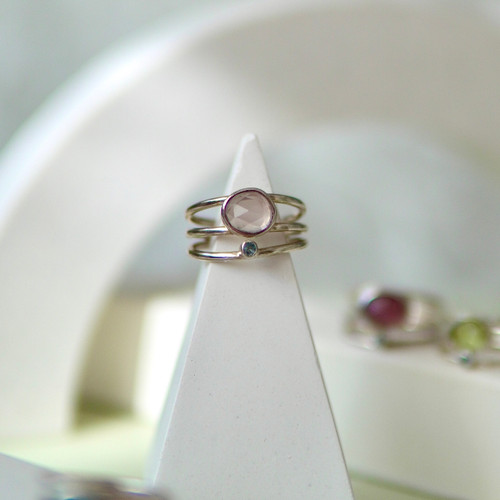 انگشتر زنانه و دخترانه اسپرت نقره و سنگ طبیعی|رزکوارتز-توپاز|دیوا