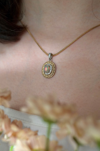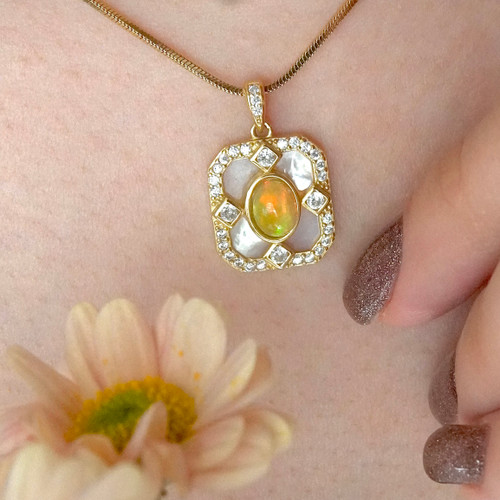 مدال جواهری زنانه و دخترانه سنگ اوپال و صدف طبیعی |نقره با ابکاری درجه یک
