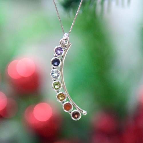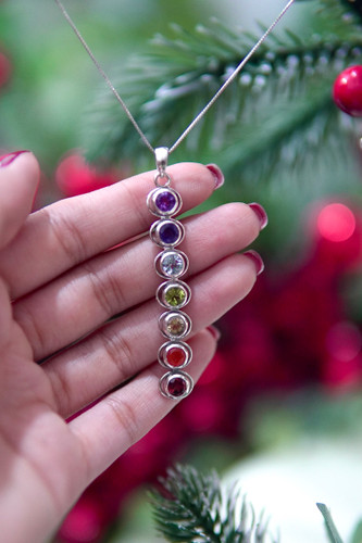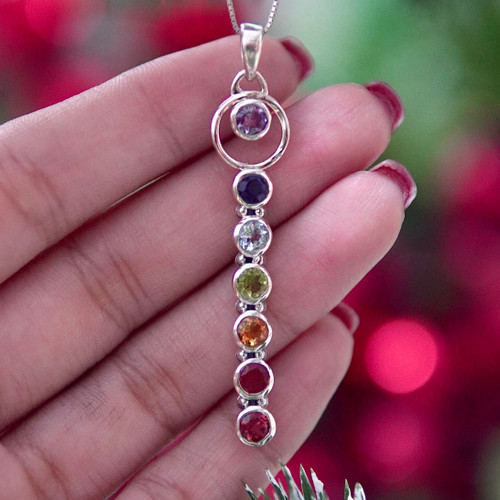 مدال اسپرت هفت چاکرا زنانه و دخترانه با پایه نقره و سنگ های طبیعی