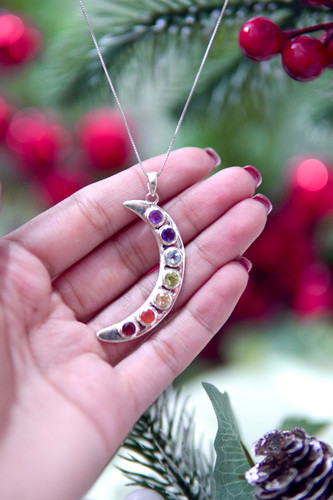 مدال اسپرت هفت چاکرا ماه زنانه و دخترانه با پایه نقره و سنگ های طبیعی