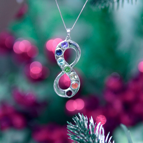 مدال اسپرت هفت چاکرا بی نهایت زنانه و دخترانه با پایه نقره و سنگ های طبیعی