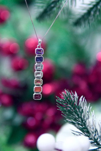 مدال اسپرت هفت چاکرا زنانه و دخترانه مدل مستطیل انرژی با پایه نقره و سنگ های طبیعی