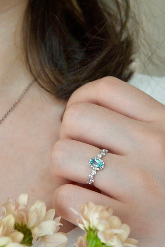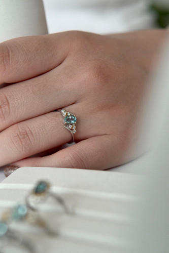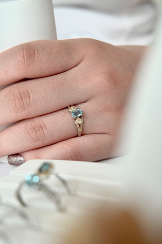 انگشتر جواهری زنانه و دخترانه با سنگ طبیعی توپاز اسکای مدل بهار | پایه نقره با آبکاری درجه یک