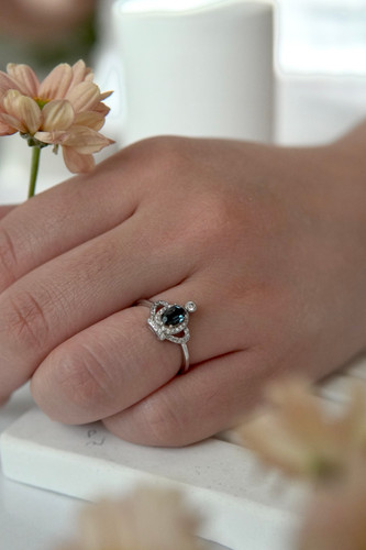 انگشتر نقره زنانه و دخترانه جواهری با سنگهای طبیعی زمرد، زبرجد و کیانیت